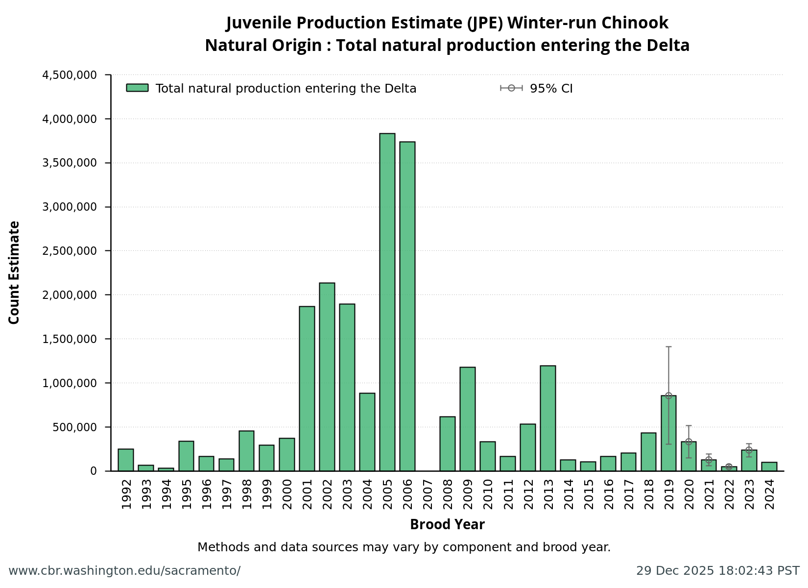 Juvenile Production Estimate JPE — annual data